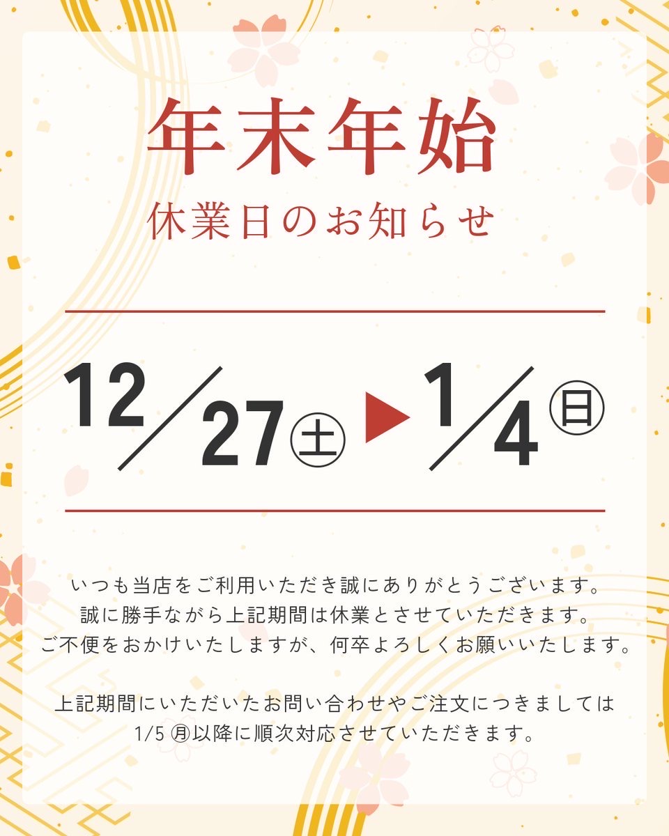 休業期間 2025年12月27日(土)~2026年1月4日(日)