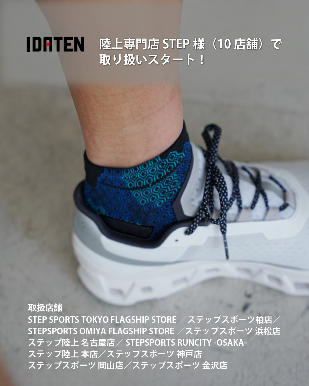 陸上専門店 STEP様 の一部店舗で【IDATEN】ソックスとカーフサポーターの販売がスタートしています。